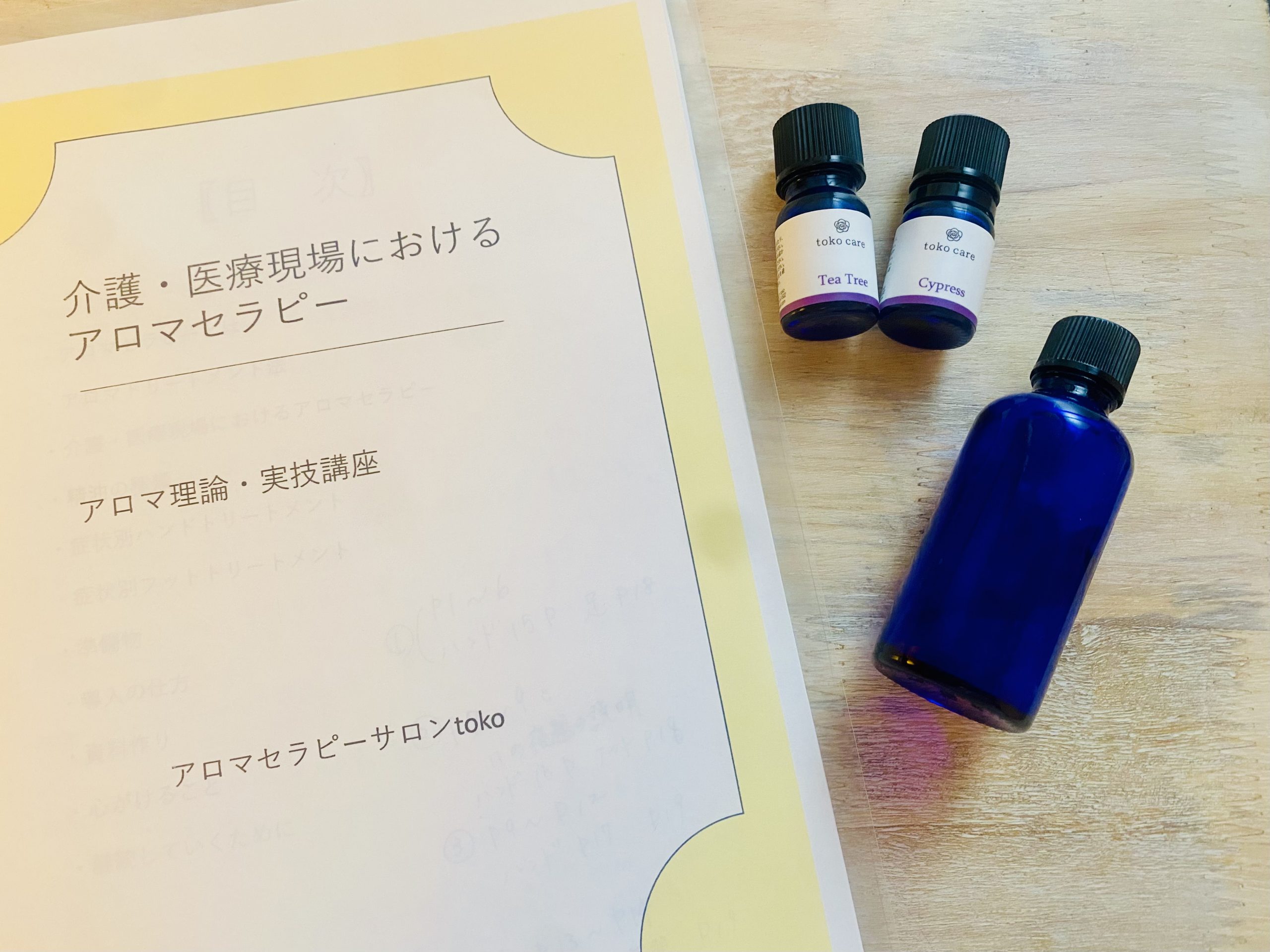 私の介護や医療の現場でのアロマケア経験から実践内容をお伝えするもので、